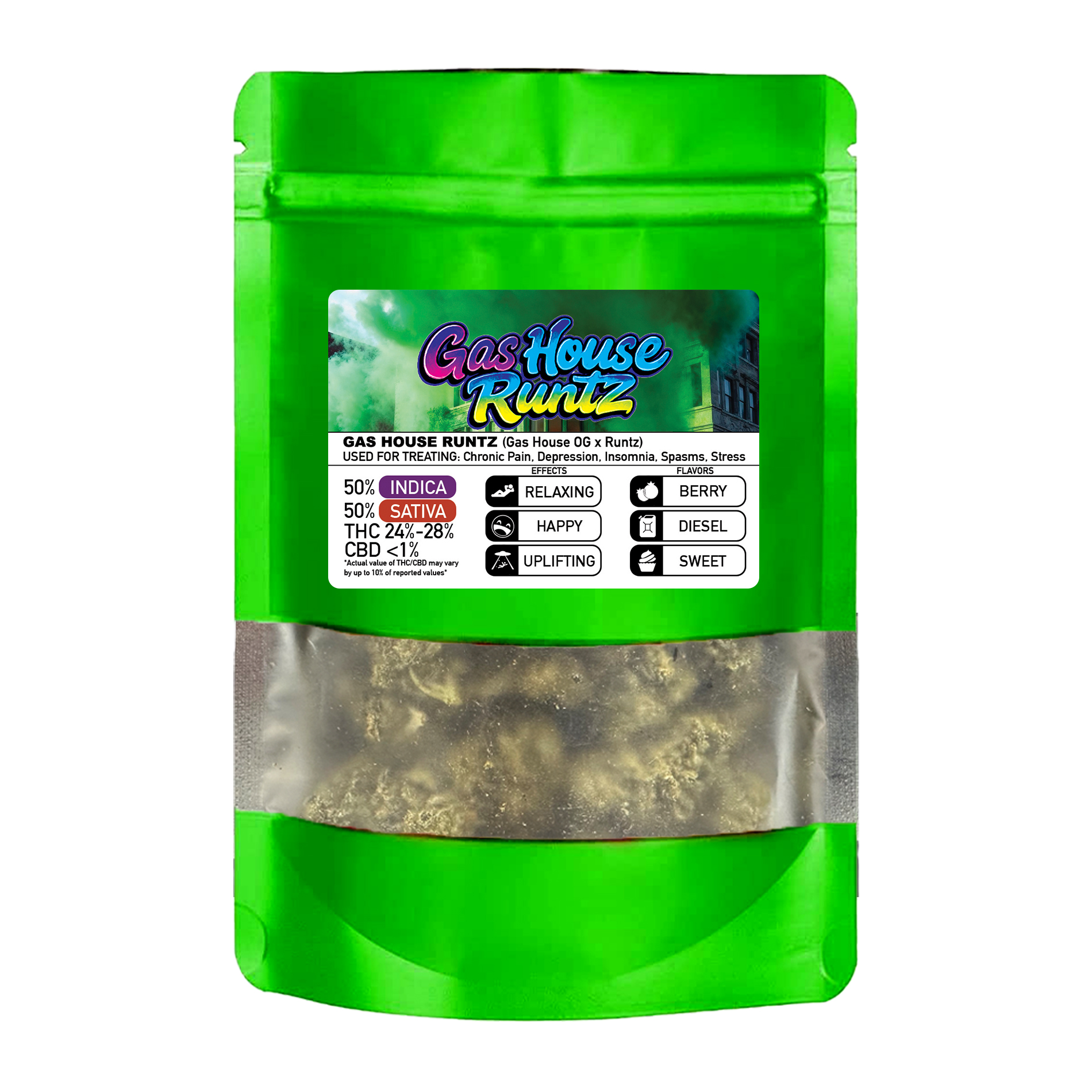 Gas House Runtz is a potent, small-batch hybrid known for its sweet candy flavor and heavy gas undertones. This pack delivers smooth smoke, uplifting euphoria, and a relaxing finish—perfect for day or night.
