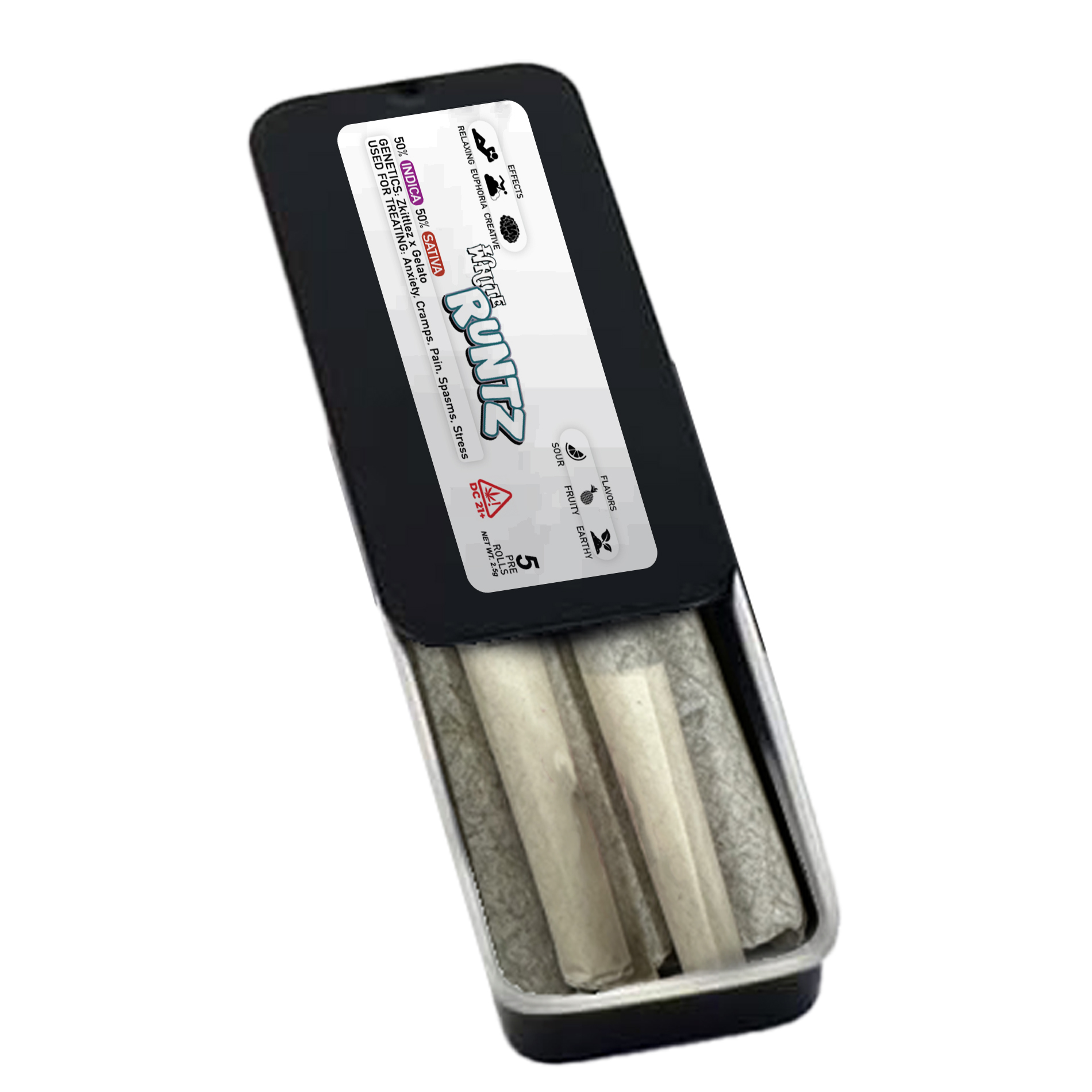 White Runtz is a balanced hybrid known for its creamy, candy-like flavor and smooth, euphoric effects. This strain offers a blend of relaxation and uplift, making it suitable for both daytime and nighttime sessions. Each pack includes five pre-rolls of premium indoor minis.